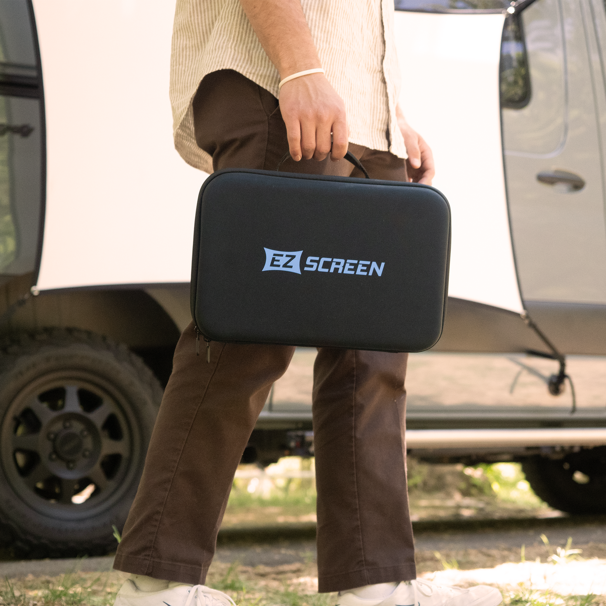 EZ Screen brings big-screen magic to wherever your journey takes you. Lightweight, ultra-portable, and built for adventure, this projector screen sets up in under 5 minutes—no tools, no team, no stress. Mount it effortlessly on cars, vans, RVs, campers, trucks, and so much more. Whether you're solo camping, vanlifing across the country, or setting up basecamp with friends, EZ Screen makes it easy to bring the entertainment with you.